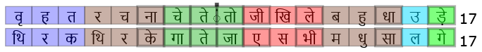 यगण, मगण इत्यादि, गीत गतिरूप के प्रतिरूप में इन रंगों में दर्शाए गए है --